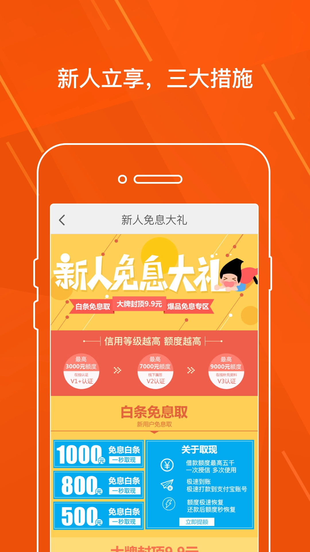 多重福利:新用户可享多重福利,涵盖白条免息提现、高额度借款等权益。