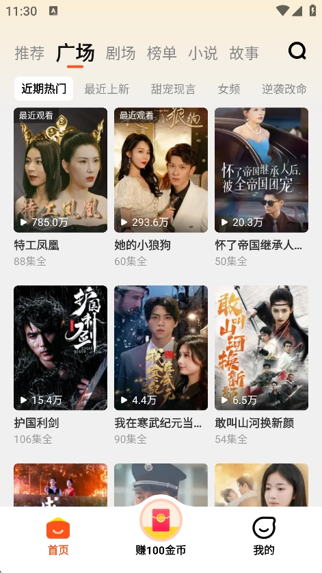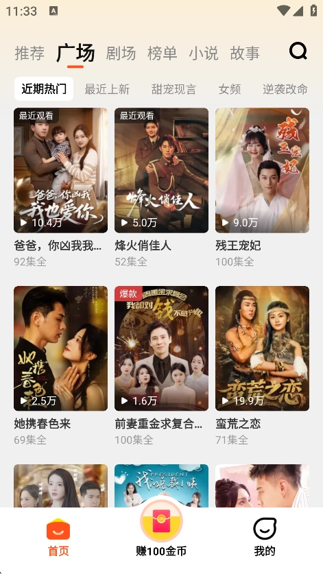 打开软件进入到广场可以看到各种短剧