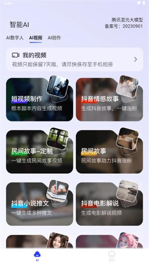 点击ai视频,在这里可以实现一键制作短视频功能