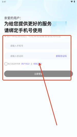 输入手机号以及获取得打的验证码即可