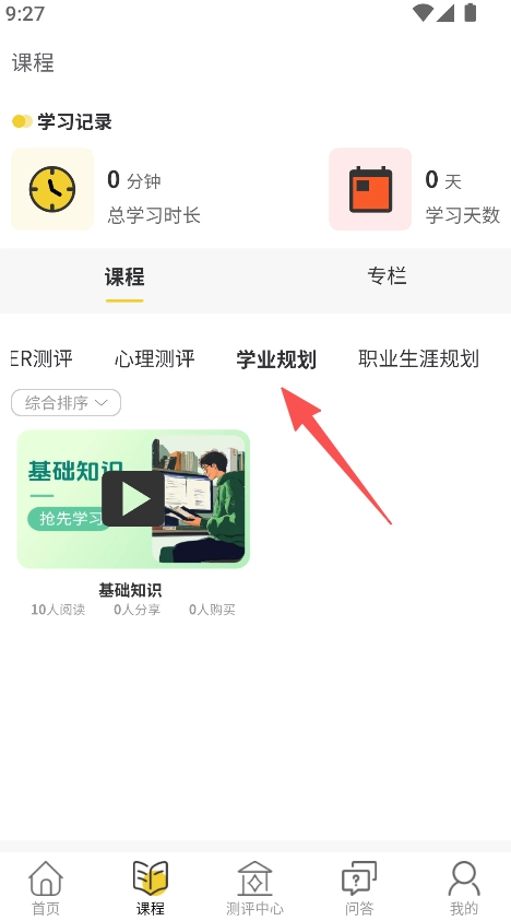 在课程页面,选择学业规划分类。