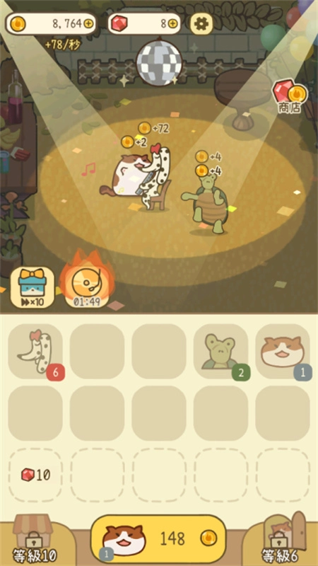 在米可的派对游戏里,你能快速合成各种不同的动物嘉宾。嘉宾等级越高,你的收入就越丰厚,努力成为最顶尖的动物乐园派对专家吧!