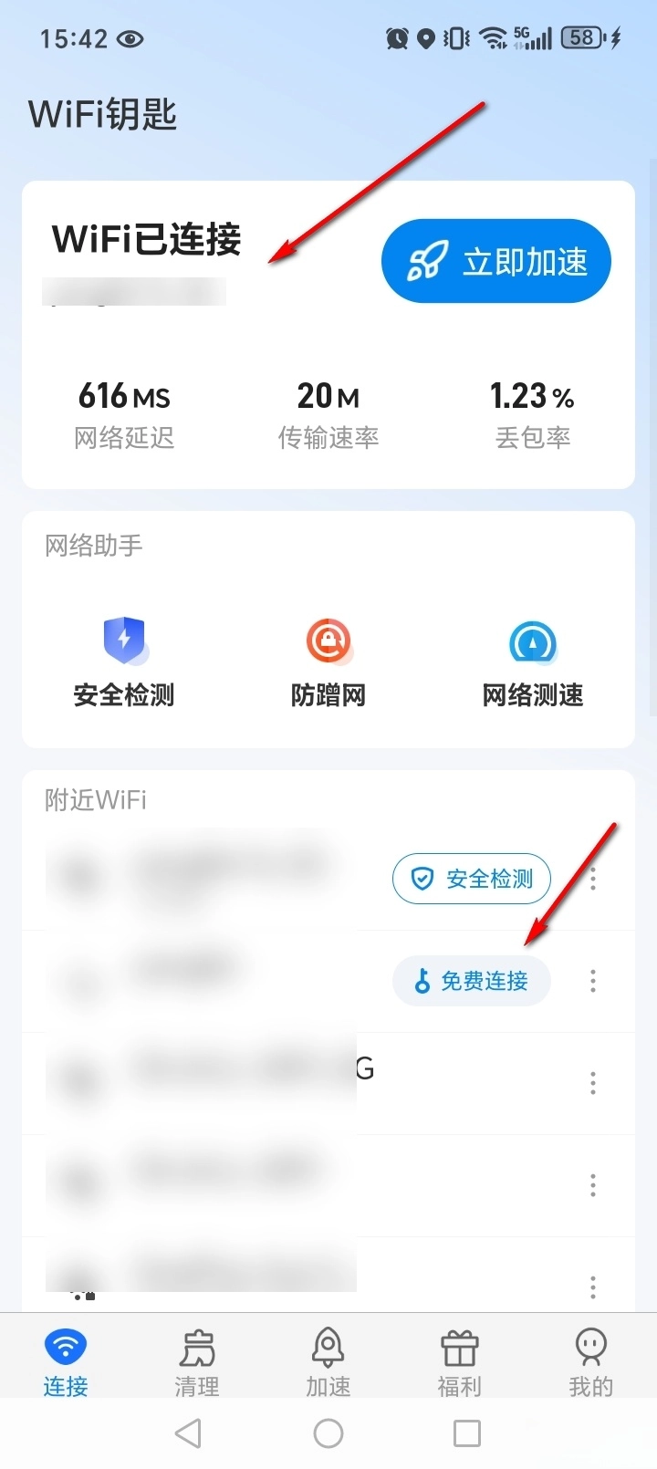 一键安全连接功能:可快速连接部分开放热点,并实时评估网络安全性并发出提醒。