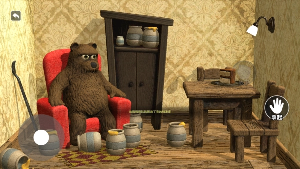 你可以通过左侧的虚拟摇杆操控棕熊移动,不过因为棕熊饥肠辘辘,它的动作会显得断断续续、很不顺畅。