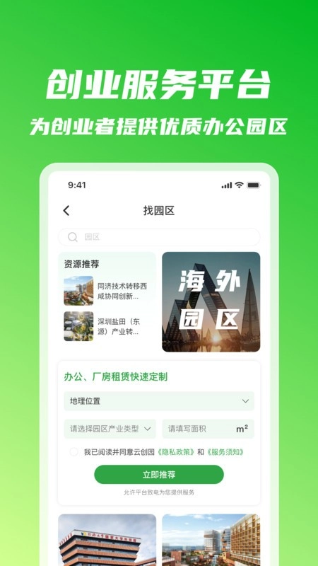 精准选址服务:整合全国范围内的优质园区资源,全方位展示各园区的成本构成、扶持政策、周边配套等核心信息,通过智能算法精准对接您的创业项目需求。