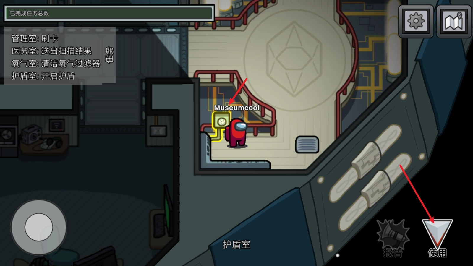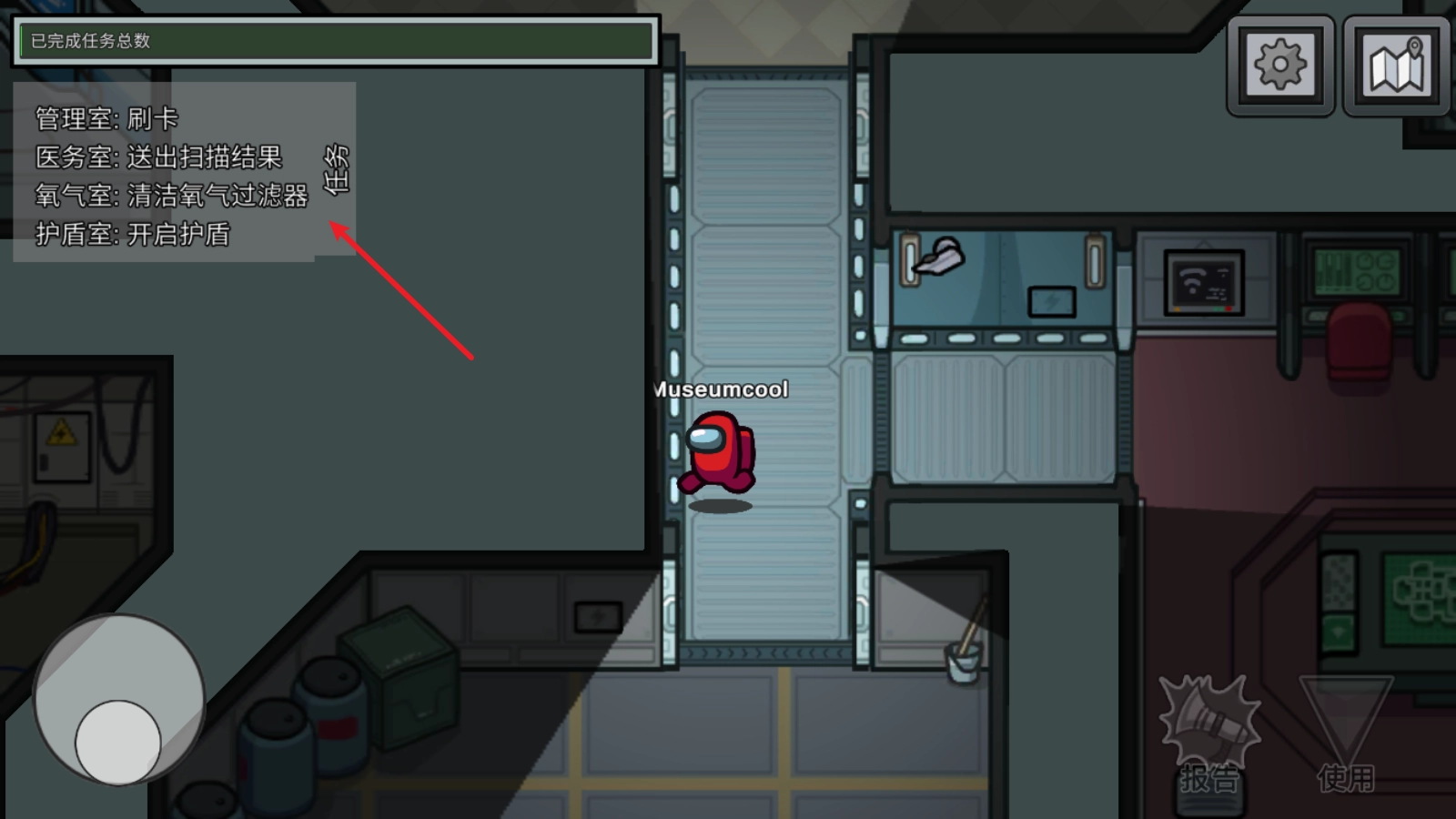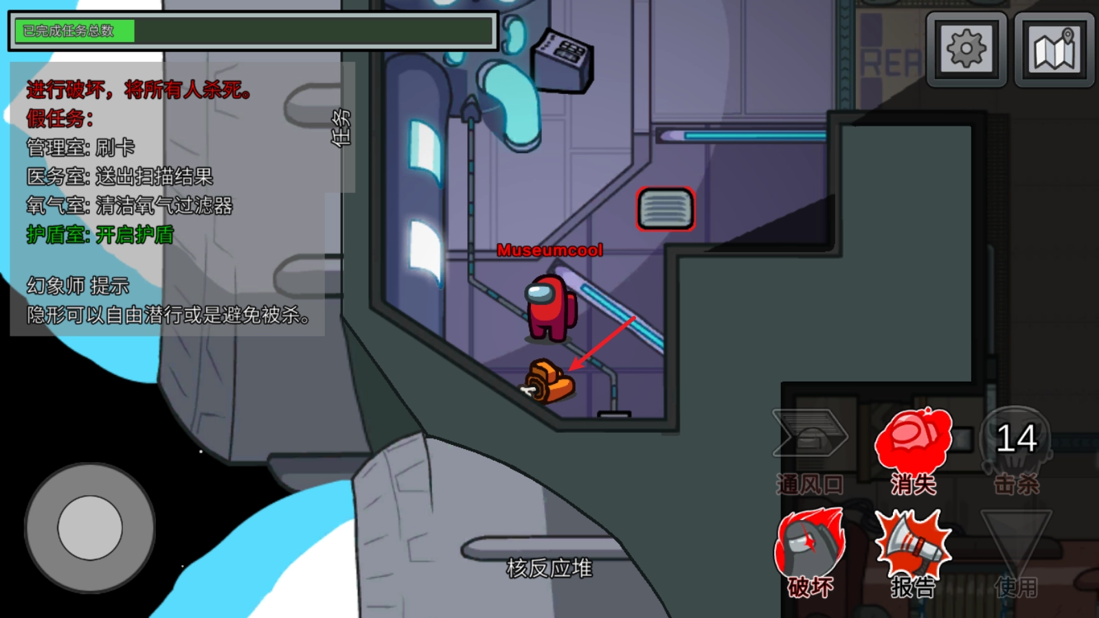 4、要是你是坏人身份,名字会显示为红色,左上角的任务都是假的,还能钻进通风管道。