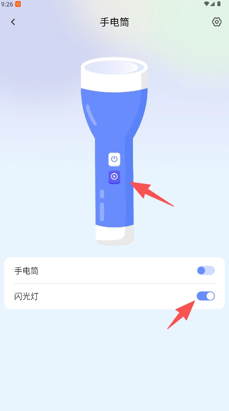 在手电筒功能页点击中心电源按钮即可开启照明。