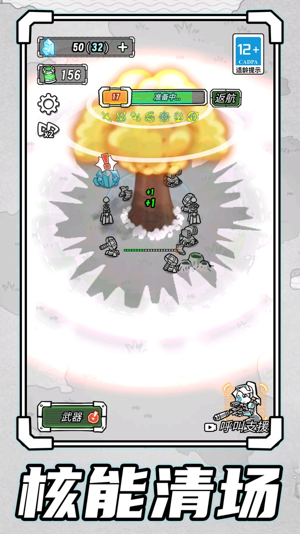 游戏以简洁线条构建科幻场景,视觉辨识度拉满。光影与粒子特效交织,让简约的战场也满是动感。