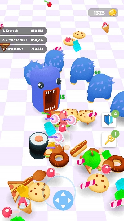 多人竞技的乐趣在于支持4人同屏对战,玩家们能够实时比拼吞噬的速度与策略,以此争夺“最强吃货”的称号。游戏中的碰撞机制还能让玩家干扰对手进食。