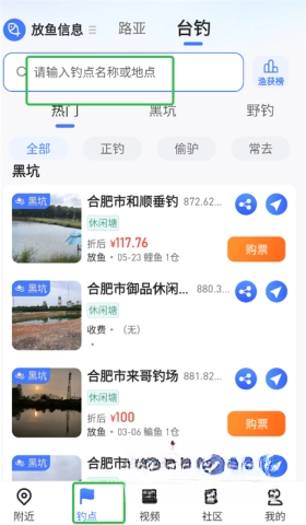 首先打开路了个鱼App,接着进入钓点页面,然后在搜索框中直接输入您想要前往的钓点名称。