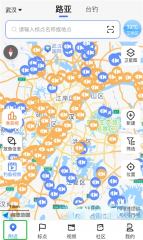 您也可以借助“附近”页面查找周边的钓鱼点,从而轻松获得更多选择。