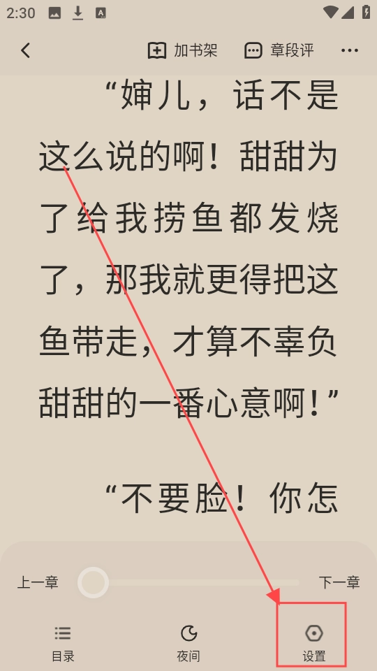 进入阅读页面后,找到并点击右下角的“设置”图标。