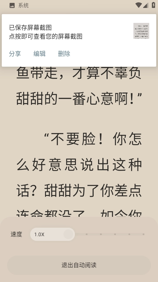 之后选择“启用自动阅读”选项,就能成功开启自动翻页功能。
