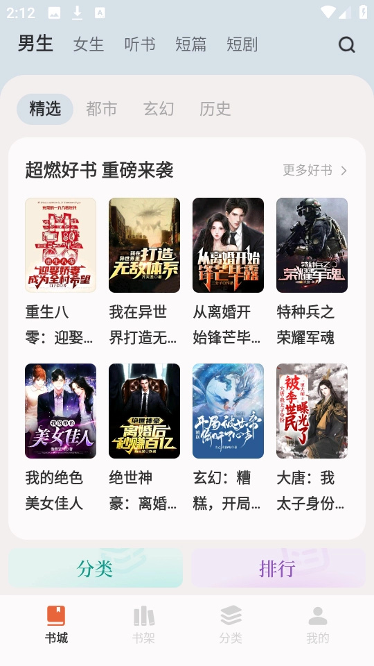 首页分类一目了然,精选、都市、玄幻、历史等多样题材的小说内容都已涵盖,方便您随心挑选。