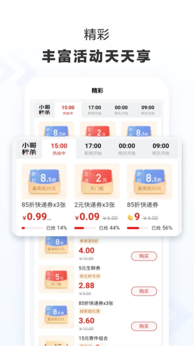 实惠精彩:超值券包、限时秒杀享不停,寄件折扣多多!