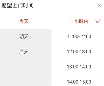2、选择寄件方式为上门取件,点击【期望上门时间】,预约时间。