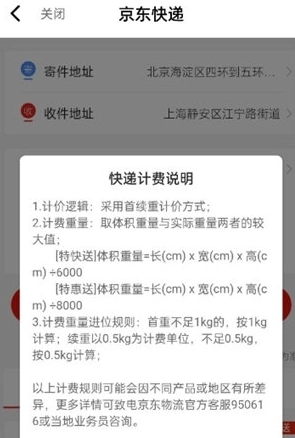 快件计费规则为标准运费报价=物品计费重量(质量计重和体积计重取最大值,陆运件体积计重为长*宽*高除以8000,航空件为除以6000)*时效产品基础运费+可选包材费用+可选保价运费,下单界面展示预估报价,实际以快递员上门为准;除国家《禁止寄递物品管理规定》禁运品外,玻璃类、陶瓷类、石膏类、不易妥善包装物品、难以客观确认价值的货物、无完整销售包装或有特殊要求的医药类物品、医学检测类物品、活体动物、现金及货币不支持揽收,香烟可揽收但一次性不超过两条;服务付款方式支持寄付现结和到付,支付类型可选微信支付、京东支付或银行卡;快递妥投后,运费付款人可点击“我”→“开具发票”申请发票;微信支付分先寄后付是微信推出的快捷支付方式,开通需先开通微信支付并绑定银行卡,开通后在小程序渠道下单选择寄付现结且单笔金额≤200元时,揽收通过微信支付无需输密码完成支付,单日最多扣款200次,实际以揽收现场快递员操作为准,仅小程序渠道可用,部分特殊场景暂不支持,默认扣款顺序为零钱→信用卡→借记卡,可在微信支付分服务管理中关闭,同一微信账号下多个京东账号同步开通/关闭该功能;开通白条代扣服务需先激活京东白条,开通后在部分系统寄件入口下单选择寄付现结并勾选白条代扣时自动扣减京东白条额度支付,账单生成后在京东白条公众号还款,实际支付方式以现场确认和系统记录为准,可在小程序、京东物流等系统使用,仅支持寄快递、寄生鲜、扫码寄入口,部分特殊场景暂不支持,仅寄付现结时可用,可在京东快递小程序关闭该服务。