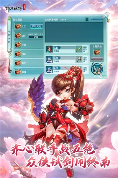 段位排名兑惊喜以武会友战群雄会当凌绝顶,一览众山小,《神雕侠侣》英雄大会玩法设置了排名系统,大侠们组队PK的过程中,赢了加分,输了则会扣分,队伍积分将根据玩家战斗输赢而累计。因此,尽管不限制战斗次数,各位大侠也需要找准队友,甄别对手,在保证胜率的前提下才能一举称霸英雄大会。