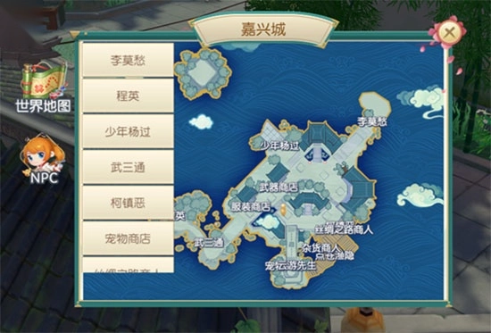 4、点开当前所在场景的小地图,可以查看到场景地图情况以及NPC位置,点击NPC即可自动寻路至附近。