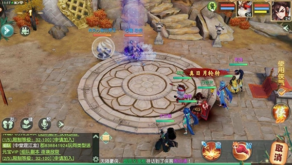 在一开始战斗时,如果敌方没有高爆发的丐帮角色时,我方可以使用龙象波若功,先蓄力一回合,在第二回合打出高伤害,侠气值足够的话也可以打出真龙象波若功,附加攻击一个敌人,但玩家也可以选择积攒侠气,等待使用不动明王咒之类的大招。如果敌方人数较少,则可以变通战术,使用单攻和封印,具体要看敌方的排兵布阵。