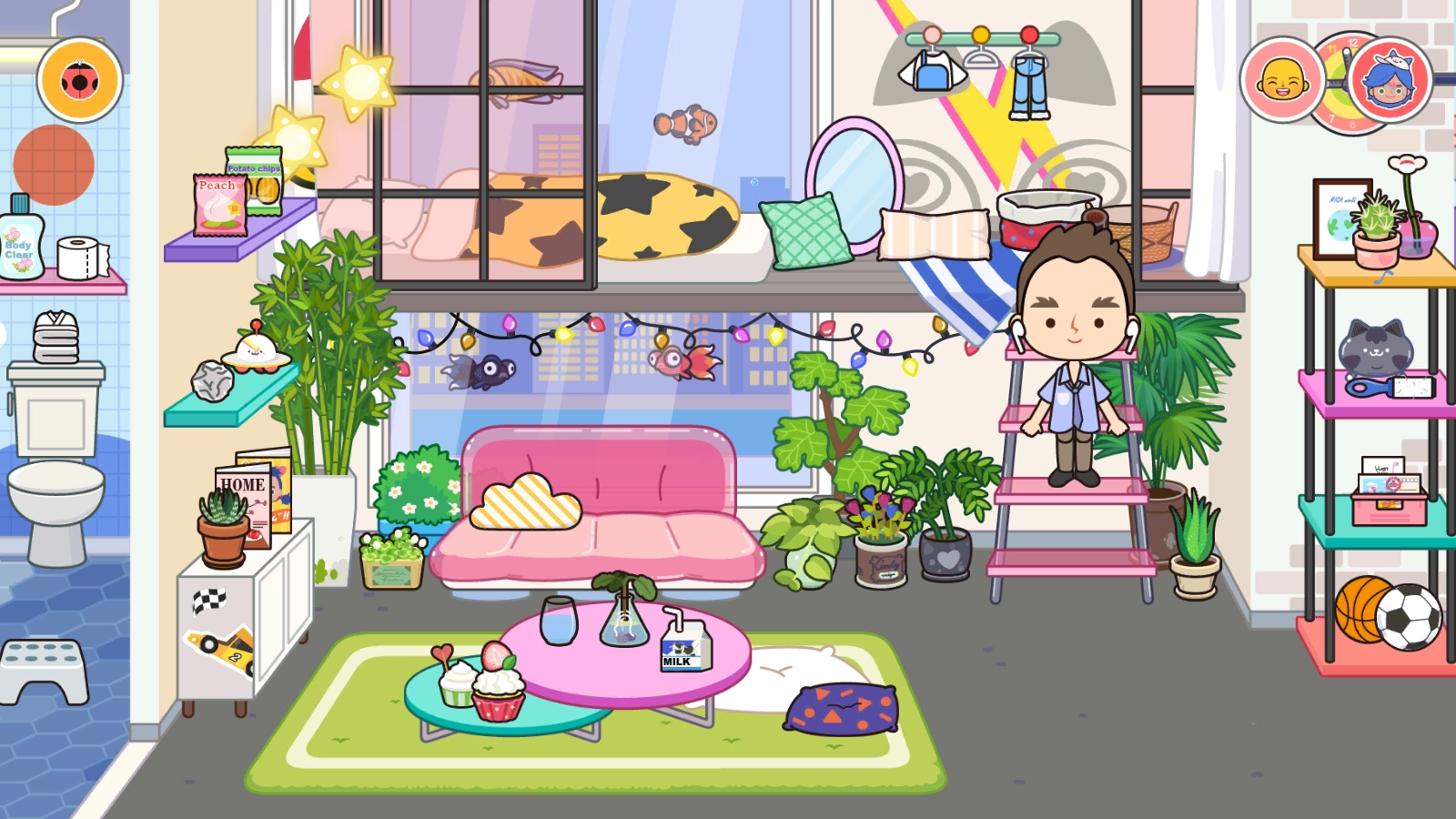 米加小镇世界游戏不设规则、没有分数和时间限制、无分数排行榜,提供完全自定义衣服、发型、神奇妆容(超百亿种自定义方式),可自定义出真实的自我并创作出属于自己的故事,还设有公寓(随时回家、邀请好友晚餐或开派对)、餐厅(Loft楼下、隐藏大厨师能料理多种食物)、便利店(7*24营业、商品多满足日常需求)、工具房(整理空间、存放宝贝物品)。