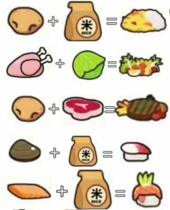 很多小伙伴或许还不清楚,游戏里的不少食物是能够组合的呢。例如生牛排搭配土豆就能制作成牛排;大米加上三文鱼就能做成寿司;牛排和面包还能合成汉堡,至于更多的食物组合,就请你自己到游戏里去探索发现吧。