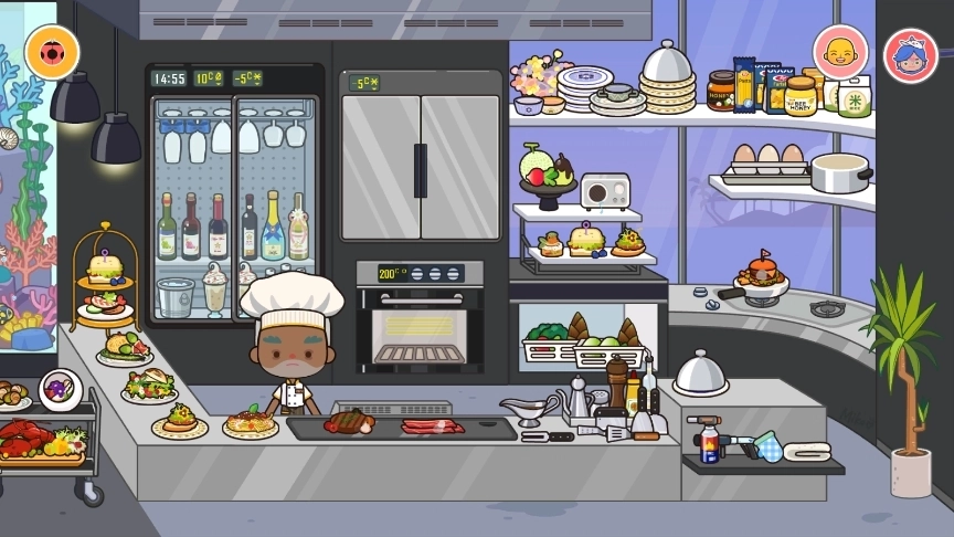 走进餐厅后,我们来到厨房区域,这里准备了丰富的食材任你挑选,锅碗瓢盆、烤箱和炉灶也都配备齐全。你只需要尽情发挥想象力,拖动食材就能开始创作啦。