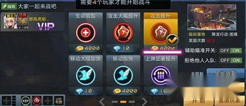 在困难降龙模式开始之前,大家可以在主界面买一些BUFF,主武器弹夹和子弹数量增加的BUFF,可以最大程度的提升玩家在局内的弹药数量。同时也可以使用金币够买攻击提升BUFF和战斗经验BUFF,这样可以提升玩家在游戏中的攻击力。