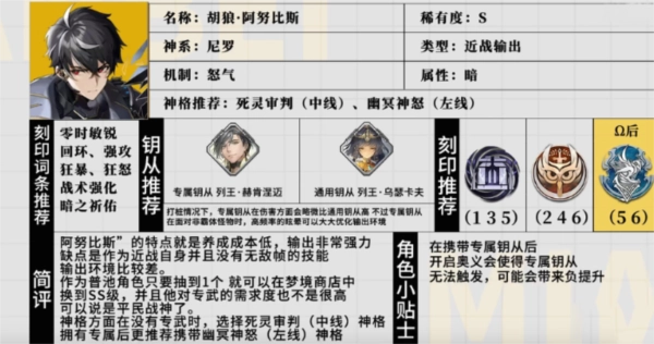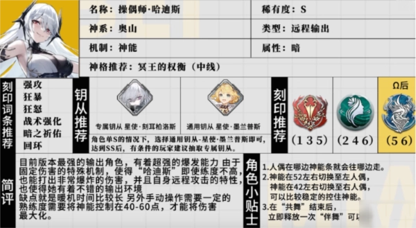 操偶师·哈迪斯是深空之眼版本最强输出角色,缺点是需要暖机时间和手操熟练度,玩起来较难;黎幻·赫拉是版本最强增伤辅助角色,能让玩家的c位伤害大幅增加;胡狼·阿努比斯是普池角色,培养简单且回报强,属于平民战神。
