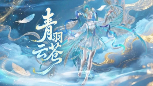 红品女装·青影弄云以青鸟为原型,色彩上选择青碧与白色,更贴近传说中的青鸟形态;在发型上,双马尾长发随风飘荡,两旁则以青鸾羽毛为点缀、娇俏可爱,头后的神环则更增添一丝神性。