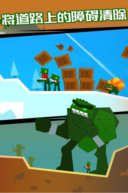 下坡突击前进:操控机器顺着下坡路行进,借助惯性与操作碾压僵尸,在跑酷过程中达成消灭任务,考验反应与操控能力。
