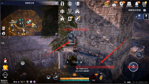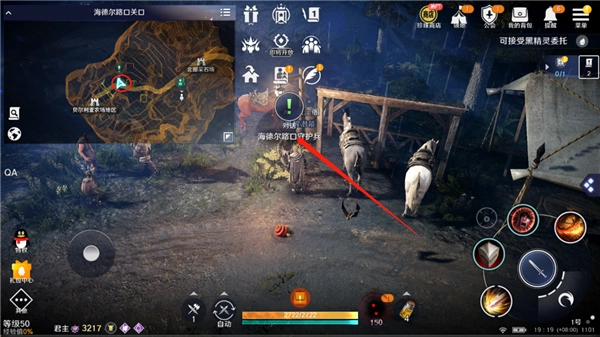 到达海德尔路口关口后,移动到红色圆圈的位置,与路口守护兵交谈即可。