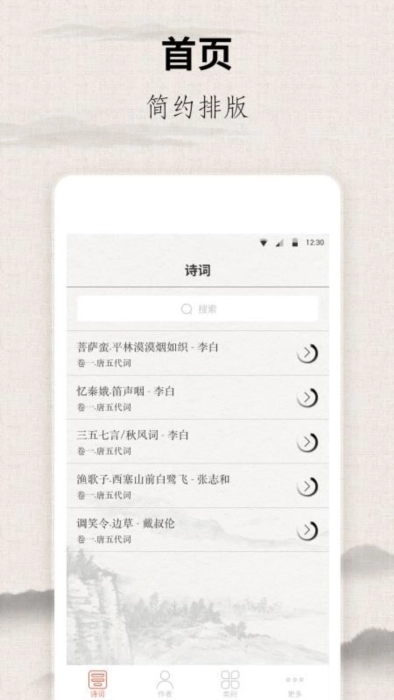 7、排版简约,用户能够清楚的查看,更好的阅读宋词内容,得到优质的服务;