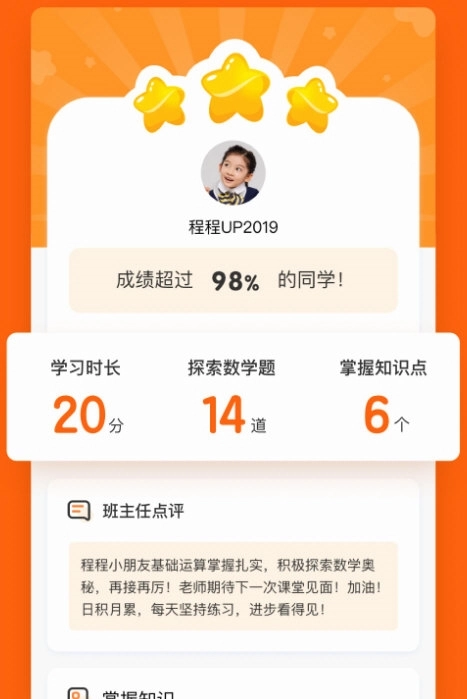 我们特别开设了家长课堂板块,会定期分享家庭教育指南、数学启蒙技巧、亲子互动游戏等内容,助力家长学会科学的陪伴方式。另外,还提供学习数据共享服务,家长能够实时掌握孩子的学习情况。
