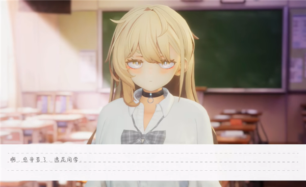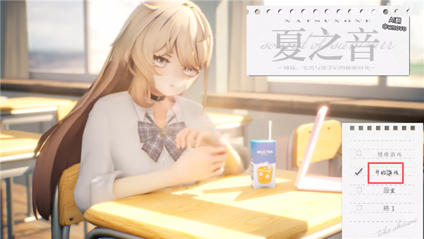 2、自动跳转教室场景,与夏音对话,选择温柔、关心选项,完成「教室邂逅」主线。