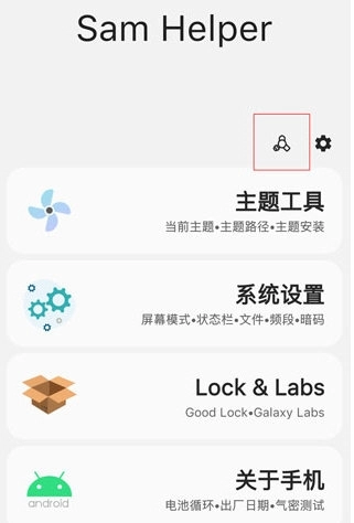 本应用提供气密性测试(可暂停/启动、自动计算极差、显示最大/最小压力,从主页上方图标或关于手机界面右上角进入)、安装自定义主题和字体(获取当前使用的主题、图标、AOD、壁纸的apk包名、查询已安装的apk路径等)、系统设置(屏幕模式、屏幕分辨率和DPI、屏幕刷新率、动画速度(需ADB或Shizuku或ROOT授权)、系统文件管理读写/Android/data/、系统界面调节、移动网络模式、移动网络频段、暗码功能——包括系统转储、硬件测试、USB模式、固件版本、电池状态、服务模式)、Lock&Labs(整合GoodLock和GalaxyLabs功能,可排序、已安装的靠前排列,可安装、卸载、长按添加快捷方式到桌面)、查看手机信息(出厂日期、电池循环、电池容量、Knox状态、DRM安全等级等,长按桌面图标可通过shortcuts进入几个系统隐藏功能),还可修改OneUI中修改后的主题字体的安装来源为主题商店或应用商店,使其能被应用和识别。