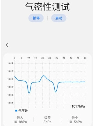 3、尝试按压屏幕,图中极差数值越大,气密性越差,切勿下水测试噢。
