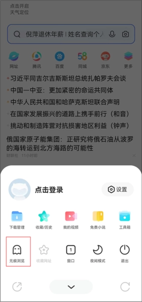 打开无痕浏览开关,即可在不留下任何浏览记录的情况下浏览网页。