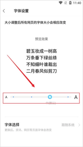 4、最后即可通过滑动来调节字体大小了。