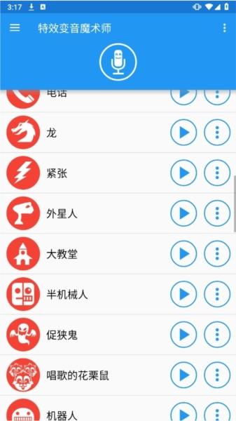 选择变声特效:在主界面上选择想要使用的变声特效,如男声、女声、机器人声等。