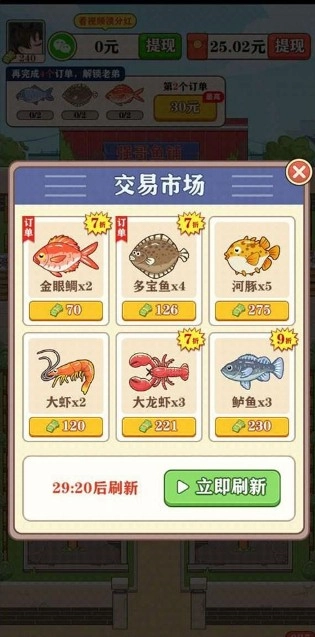 这款游戏玩起来真是让人上瘾,核心玩法就是采购鱼类再进行售卖,看着自己的小鱼店一步步发展壮大,那种成就感特别强烈。游戏里还会出现一些经典角色来当顾客,互动起来满是趣味梗,总能让人忍不住会心一笑。而且它操作简单不用费脑,特别适合闲暇时随手点几下,用来打发时间再合适不过了。