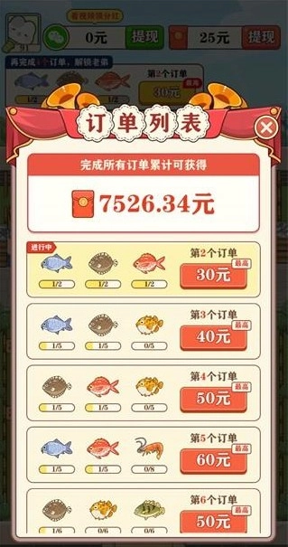 收集指定鱼类完成任务,直接领取红包奖励