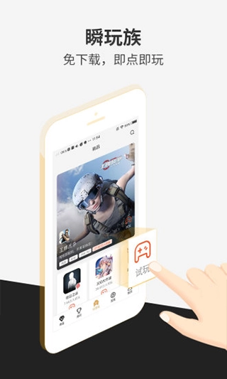 3、智能推荐个性化游戏:瞬玩族可依据你的游戏偏好与历史记录,智能推荐契合你喜好的游戏,助你更便捷地发现心仪的游戏。