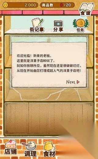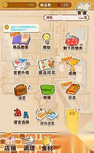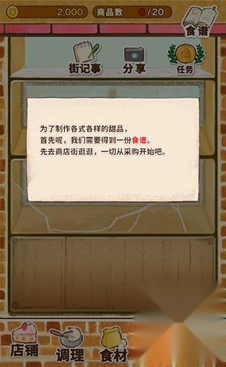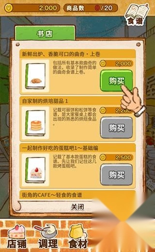 点击底部的【商业街】能够购买各类食谱,用以制作可口的甜品。