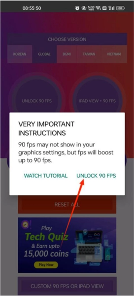 授予权限后,您可以通过单击解锁90FPS按钮来解锁90FPS。