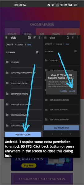 单击将重定向到文件夹的解锁90FPS按钮。