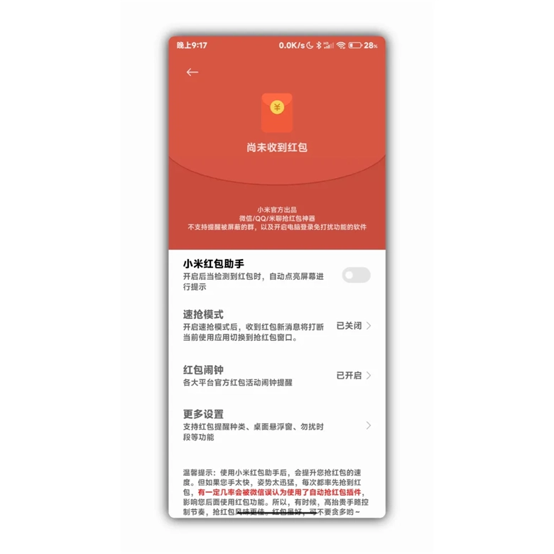 第二个是红包助手,这是一个不需要root就可以自动抢红包的功能。红包来了就会自动跳转页面抢红包。顶上还会展示“战绩”。