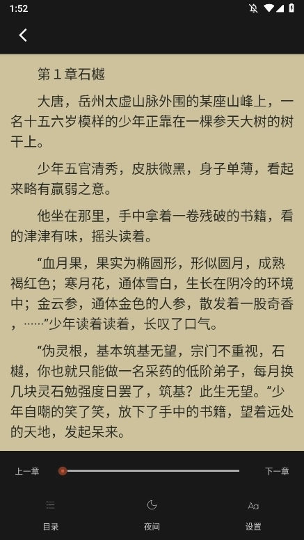 在阅读界面,既能通过滑动屏幕来翻页,也能点击屏幕下方的章节列表选择章节阅读。