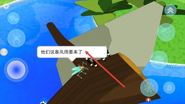 在场景里碰到其他动物时,能点击像【他们说暴风雨要来了。】这类对话提示,以此获取剧情相关信息,帮助推动游戏进度。