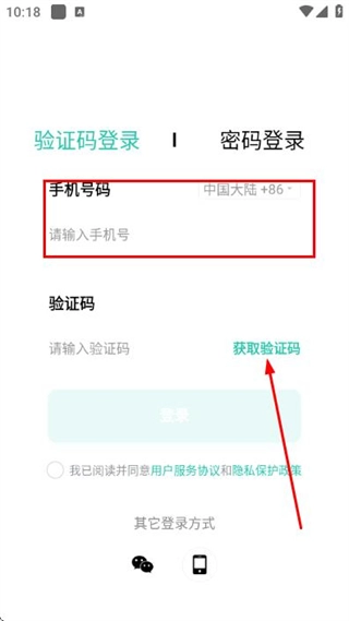 在登录验证页面输入手机号,勾选相关协议后,点击“获取验证码”按钮。